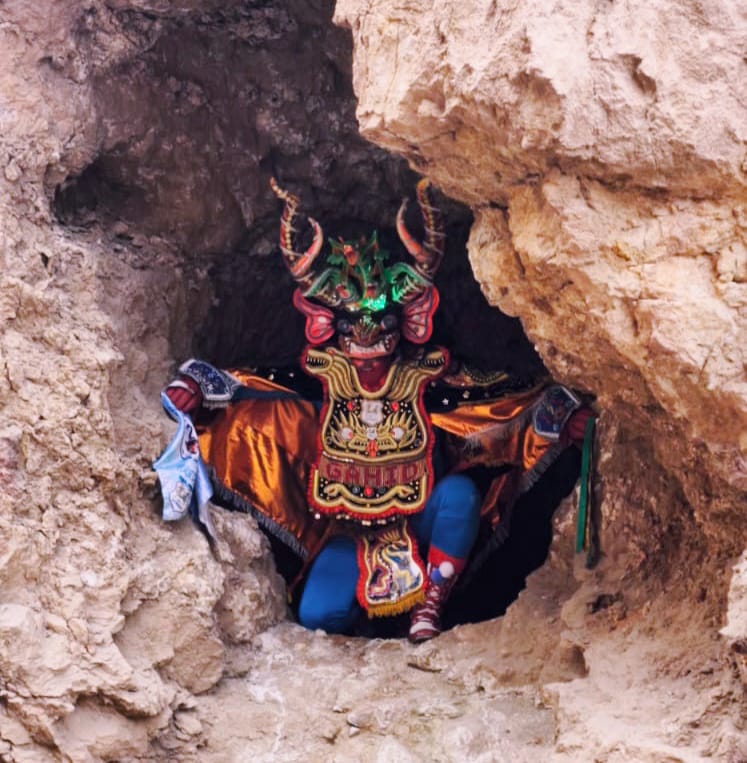 .vision andina, el personaje es visto como el ser del Maqhapacha (mundo de abajo) Supay. Aunque Supay se traduce como diablo, esta deidad no es solamente malevola, sino que tambien es relacionada con la epoca de lluvias del ciclo agricola en los Andes y con los familiares muertos...